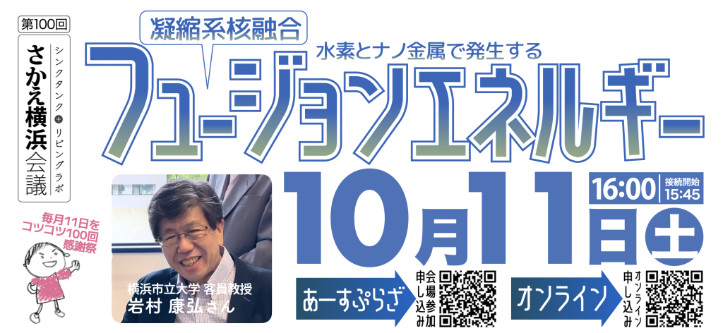 10/11(土) 》第100回 さかえ横浜会議|フュージョンエネルギー(凝縮系核融合)